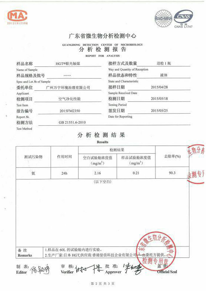 廣州萬寧環(huán)境治理有限公司前身是廣州市匡琦貿(mào)易有限公司,成立于2002年,屬香港堅信科技企業(yè)公司中國地區(qū)營運總部,負責環(huán)境治理系列產(chǎn)品的進口、技術指導、工程施工及招商工作。2015年日本總部成功開發(fā)出HGT超級銀光觸媒,該產(chǎn)品利用飛米技術將二氧化鈦和銀離子結(jié)合,產(chǎn)生強大的氫氧自由基,能在一分鐘內(nèi)凈化空氣。我公司作為HGT品牌中國營運總部,獨家銷售最新一代頂尖技術光觸媒產(chǎn)品,新產(chǎn)品徹底去除甲醛、強效殺...